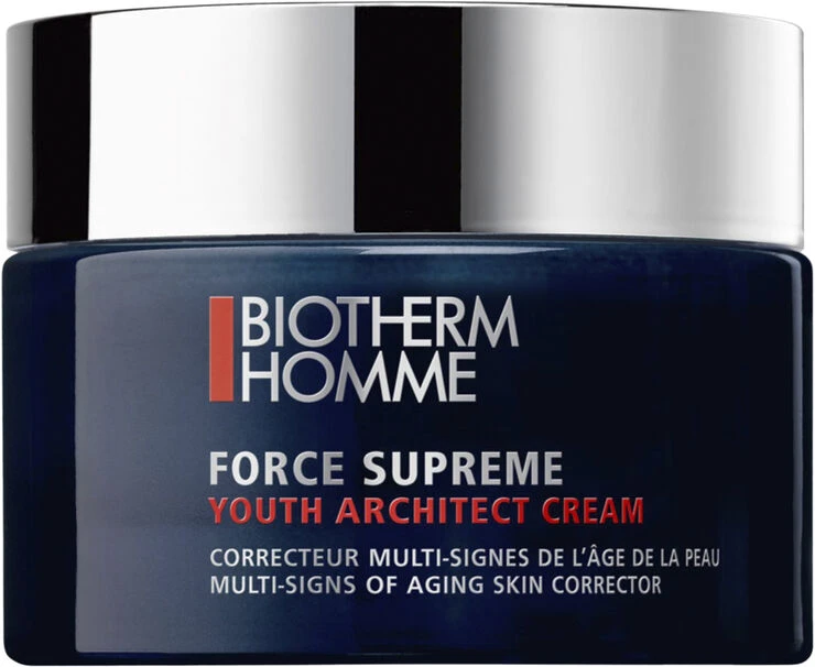 Biotherm Force Supreme Youth Architect Cream er en koncentreret creme, der modvirker synlige tegn på aldring hos mænd fra 40+. Kan anvendes af alle uanset hudtype. Indeholder algen Life PlanktonTM, som stammer fra de varme thermalske kilder i Frankrig. Cremens tekstur er ikke klistret, føles let på huden og trænger hurtigt ind. Huden bliver fastere og mere jævn.