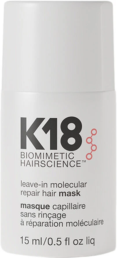 K18 Leave-in hårmaske til hjemmebehandling der heler og styrker håret, ved hjælp af en patenteret bioaktiv peptidbehandling. Hårmasken styrker håret og forbedrer elasticiteten, samtidig med den reparerer skader fra kemiske behandlinger, såsom hårfarvning og ved brug af varmeredskaber. K18s peptide er skabt ved hjælp af biomimetik hvilket vil sige, at den trænger ind i håret og erstatter tabet eller beskadiget struktur i hårets naturlige keratinkæder. Derfor skaber den varige resultater, der ikke vaskes ud.