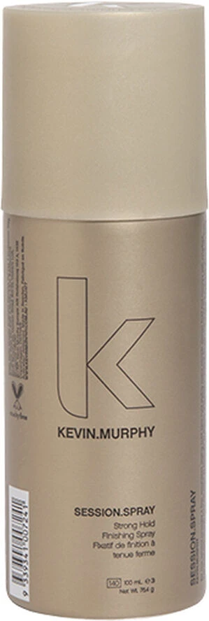SESSION.SPRAY fra KEVIN.MURPHY er en ultralet finishingspray med langvarigt, kraftigt hold og fugtbeskyttende egenskaber. Indeholder vedbendbladsekstrakt som bevarer fugten i håret og beskytter mod udtørring, Hydrolyseret hvedeprotein som er en naturlig C-vitaminkilde og UV-beskyttelse som beskytter og tilfører glans, og Memory hold-harpiksudtræk som ikke klæber men giver fleksibilitet, kontrol og glans.