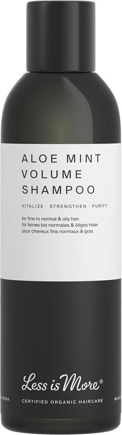 Denneeksklusive, plejende og økologiske Aloe Mint Volume Shampoohar en vitaliserende formel fri for sulfater.Den giver volume til et fint til normalt hår, og har en behagelig forfriskende og klargørende virkning på et hår med tendens til at fedte. AROMATERAPI: Stimulerende, forfriskende, styrkende og renser hovedbunden.