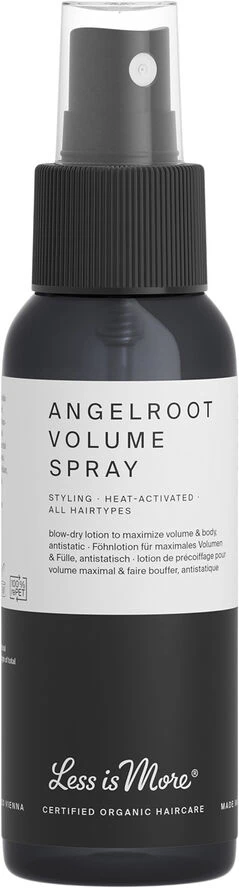 Denne eksklusive og økologiske Angelroot Volume Spray er en volume spray til brug ved føntørring. Skaber maksimal volume og shine uden at tynge håret. AROMATERAPI:Opkvikkende og plejer hovedbunden.