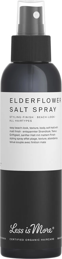 Denne eksklusive og økologiskeElderflower Salt Spray er fugtgivende styling spray som giver struktur, volume og blødt hold med en mat finish. Ideel forberedelse til opsætninger og fletninger.