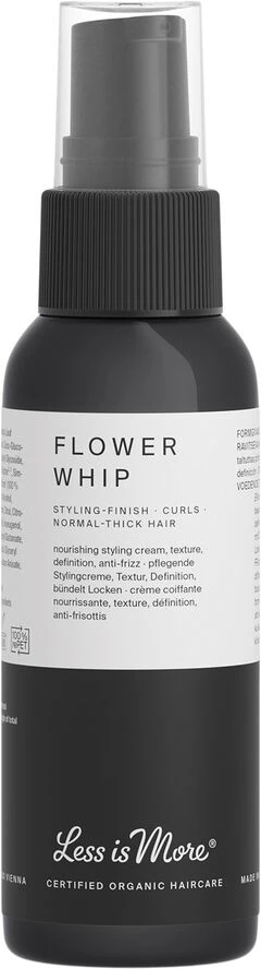 Denne eksklusive og økologiskeFlower Whiper en alsidig styling creme som er helt specielt fantastisk til krøller.Den giver et flot glans og er perfekt i et hår som ønsker en let struktur – kan bruges i alle hår typer. AROMATERAPI:Afbalancerende, afslappende og lysner sindet.