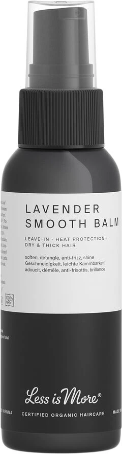 Denne eksklusive og økologiskeLavender Smooth Balm er en meget nærende leave-in conditioner, som giver en vægtløs pleje til kraftigt og tørt hår og efterlader håret dejlig blødt.Den er ideel til krøllet hår og beskytter mod varme under styling og forebygger spaltede spidser. AROMATERAPI: Afslappende, beroligende. Lindrer hovedbunden.