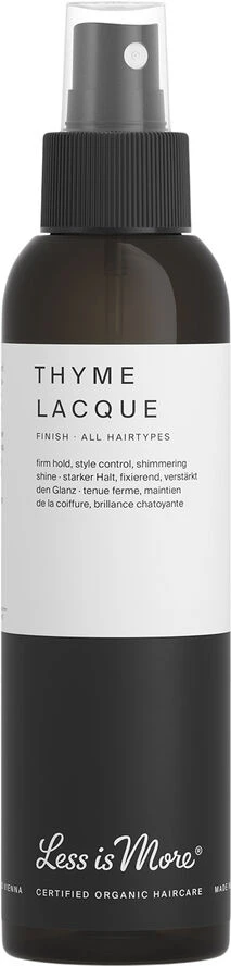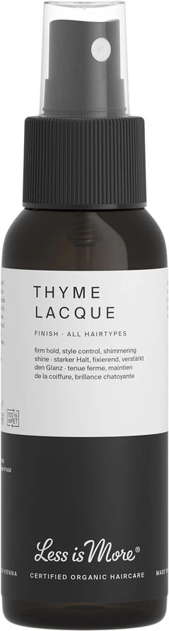 Denne eksklusive og økologiskeThyme Lacqueer en hårlak med kraftigt hold. Den giver et glansfyldt hår og er en fugtgivende naturlig spray.AROMATERAPI: Styrker et lysere sind og toner hovedbunden.
