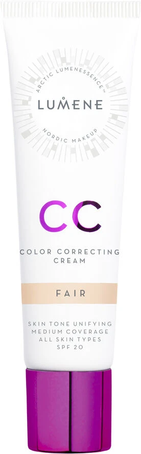 Color Correcting Cream SPF20 er en let, medium dækkende CC cream, som reducerer rødme og udglatter huden, så den fremstår naturlig og med flot glød. CC Cream er beriget med nordiske tyttebær, der udglatter og udjævner hudtonen, samt fugtgivende nordisk kildevand. CC Cream er nem at applikere og fordele fordele jævnt på hudens overflade. CC Cream minimerer synligheden af eventuelle misfarvninger og rødmen. CC Cream er med SPF20 og beskytter mod solens skadelige UVA- og UVB-stråler. Påfør med fingerspidser eller en foundation børste fra midten af ansigtet, blendes ud af for et perfekt resultat. 100% vegansk.