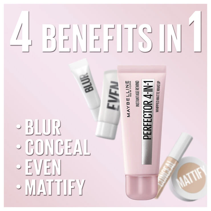 Whipped Matte Makeup er en 4-i-1 hudforskønnende makeup som slører, gør huden mat, skjuler og gør hudtonen jævn med kun ét trin. Formlen føles let på huden og har nuancer som tilpasser sig og toner sig ud så de passer din naturlige hudtone.