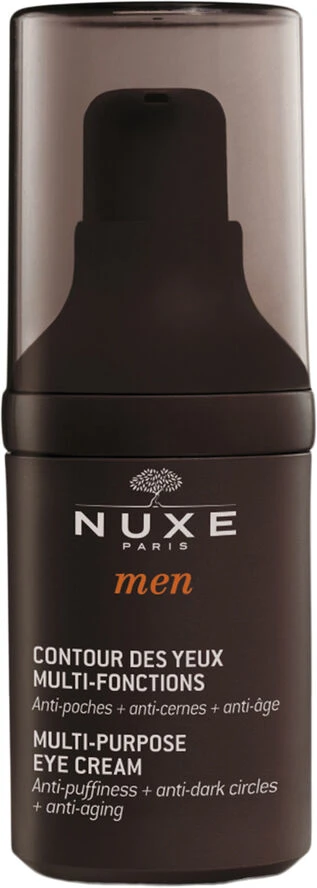 Nuxe Men Eye Cream er en let væske med dyrebar blå evig blomst, som fugter, reducerer tegn på træthed og bekæmper hudens ældningstegn, samtidig med at den beskytter huden mod oxidativ stress forårsaget af daglige irriterende stoffer. Den reducerer forekomsten af hævelse under øjet og formindsker mørke rande.