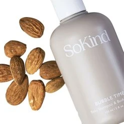 Bubble Time er formuleret og produceret i Danmark og leveres i bæredygtigt emballage. Fri for farve, alkohol og parfume. Alle SoKind produkter er veganske, allergi-certificerede og er ikke testet på dyr.